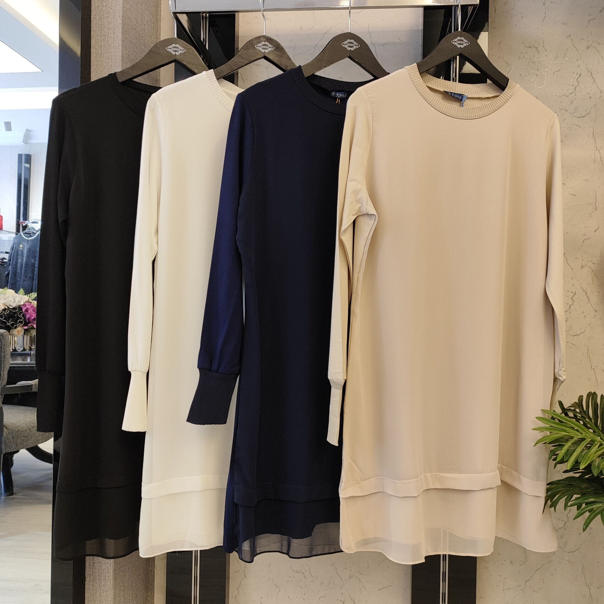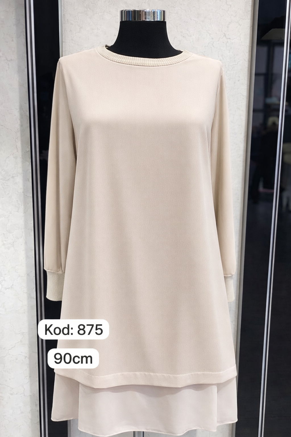 Ön kısmında ekstra şifon kat vardır. 90cm boy